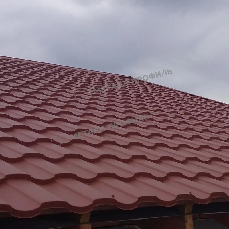 Профиль имитирует натуральную черепицу с увеличенной длиной волны, что придает крыше выразительный рельеф. Высота ступеньки 25 мм и общая ширина листа 1190 мм позволяют эффективно покрывать большие площади. Форма XL подразумевает удлиненные модули, упрощающие монтаж и минимизирующие отходы.