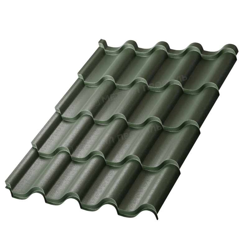 Металлочерепица с профилем Монтерроса-S от компании Металл-Профиль представляет собой надежный кровельный материал толщиной 0,45 мм. Она покрыта защитным слоем VikingMP® в цвете RAL 6007 (бутылочно-зеленый), что обеспечивает долговечность и эстетичный вид. Этот продукт сочетает в себе прочность металла и имитацию натуральной черепицы, идеально подходя для частных домов и коммерческих объектов. Благодаря современным технологиям производства, материал устойчив к коррозии, УФ-излучению и механическим повреждениям, что делает его отличным выбором для регионов с суровым климатом.